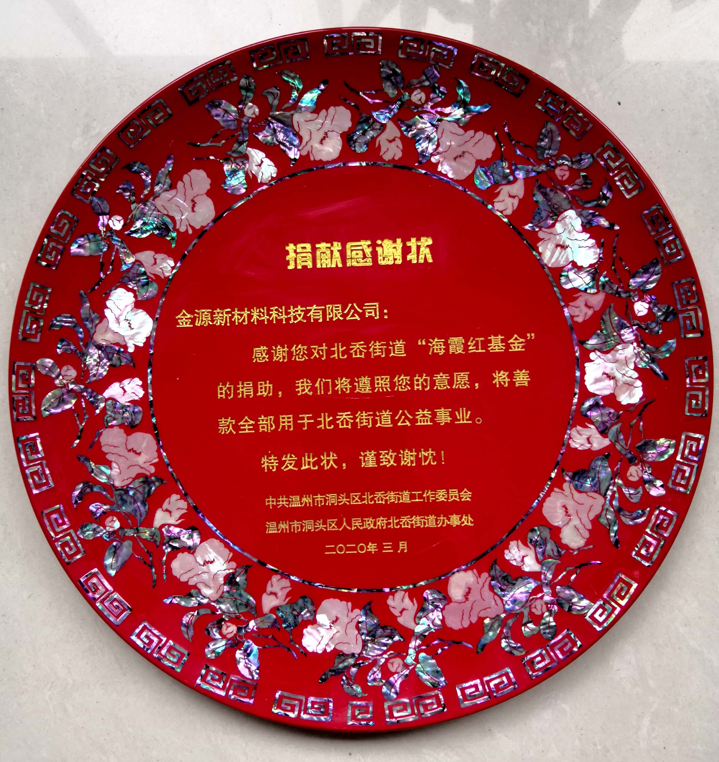 海霞紅基金捐贈感謝狀